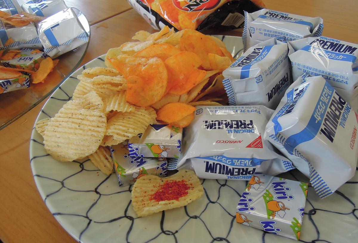 カラムーチョにクリームチーズ、そしてぎざぎざポテトに一味 (はぁと