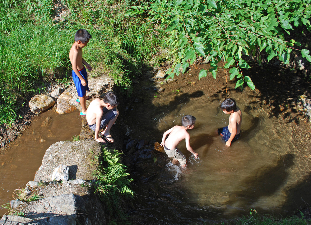 おうちの前にはきれいな小川が流れていて、地球たんけんたいのちびっこたちはおおはしゃぎ!!