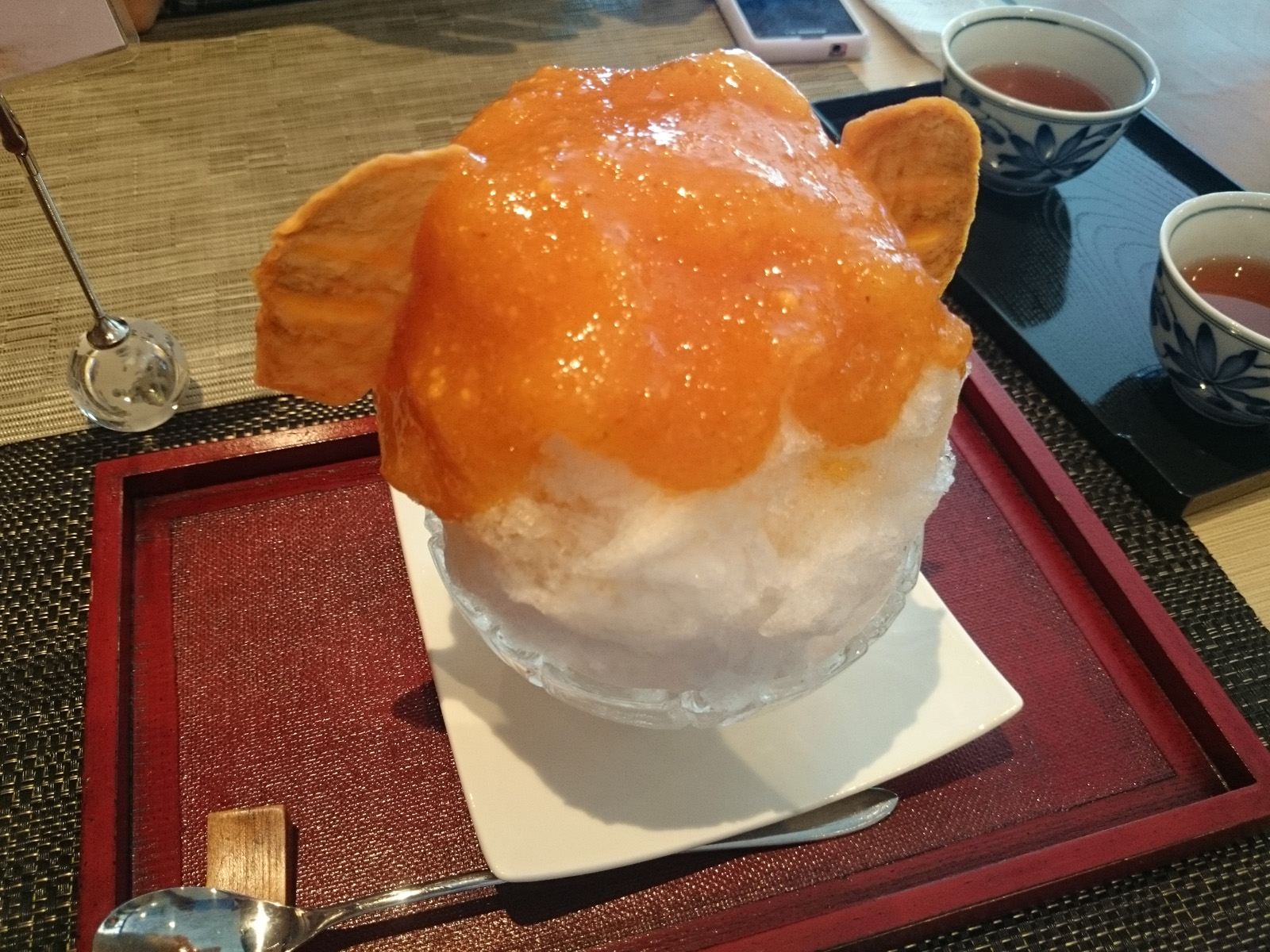 そう。皆さんご存知、かき氷の日です! なぜかき氷の日なのかは日本かき氷協会に問い合わせてくださいね。 たまちゃんが紹介するといっていたかき氷の記事がなかなかあがらないので、 わたくし、坂井が食べに行ってきました。 噂になっていたかき氷は、法隆寺の門前にある柿の葉寿司で有名な「平宗(ひらそう)」さん。 地元なのにここでかき氷やってることを知らなかったんですが 最近、広報誌に記事を入れられてるようで、名物になっているようです。 というわけで、さっそく頼んでみました。 じゃーん! いかがでしょうか。 濃厚な柿シロップにドライフルーツの柿スライスが耳のように2つくっついているスタイル。 なかなか個性的でしょ。 お味の方は、濃厚な柿シロップが最後まで楽しめますよ。 是非、奈良方面へ来られた際は寄ってみてください。 暑い日が続きますが、皆さんお体に気をつけてお過ごしください。 事務局 坂井 PR コメントを投稿する
