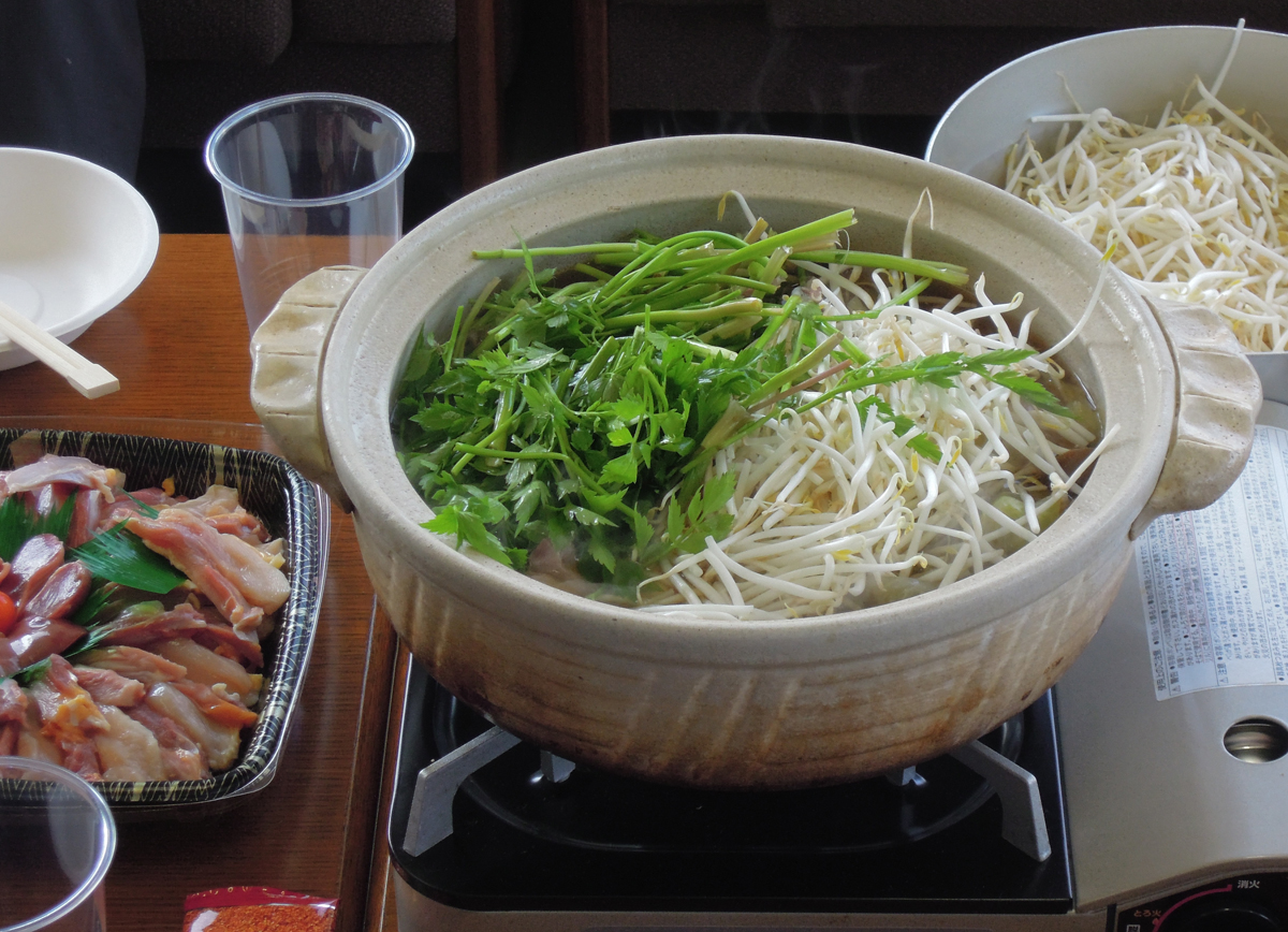 今回は、近江の地鶏鍋~♪ 野菜しか、写ってないね・・・